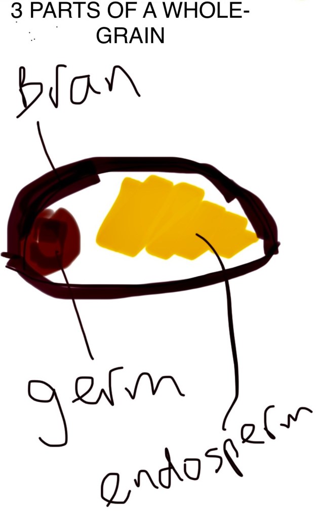 A whole-grain is food from a plant which contains three major components: bran, endosperm, and germ.