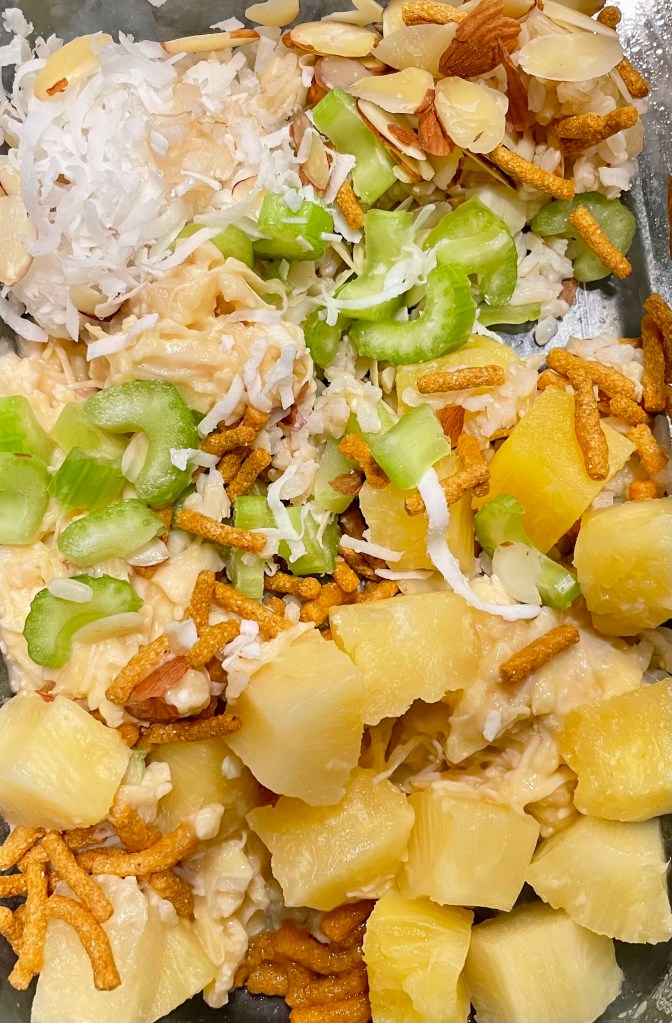 Recipe – Hawaiian Haystacks (by the way, this is a great one for potlucks, everyone bring one of the ingredients!) – Servings 4